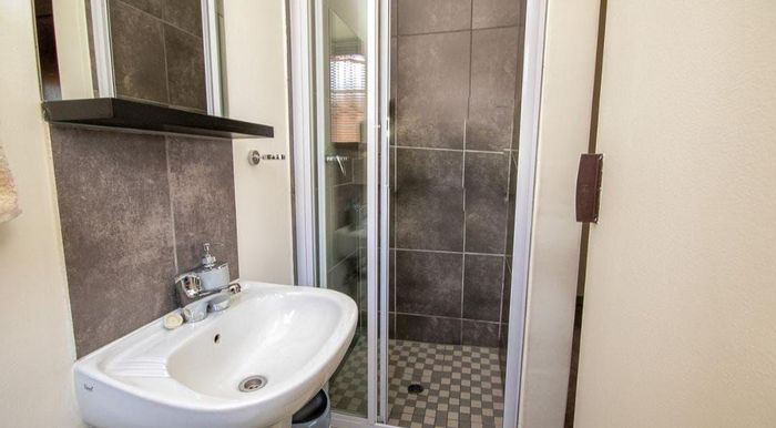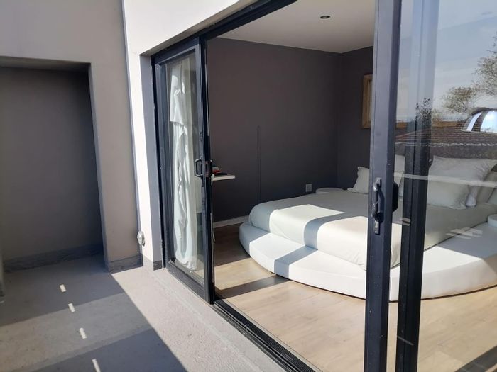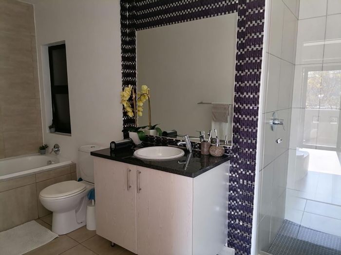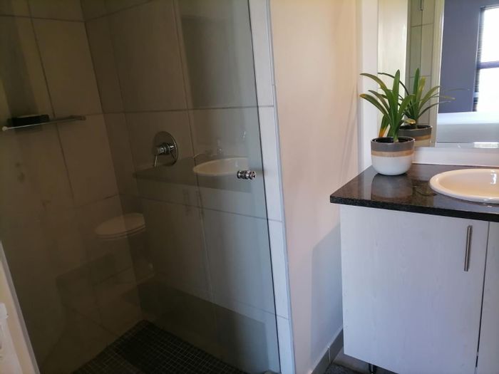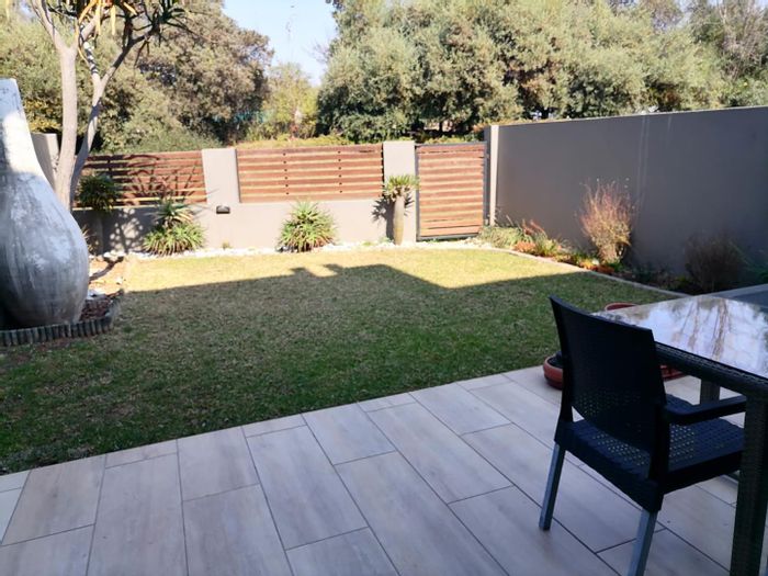 Two-bedroom, two-bathroom simplex in Centurion estate, 81 m² with garden and one covered parking space.