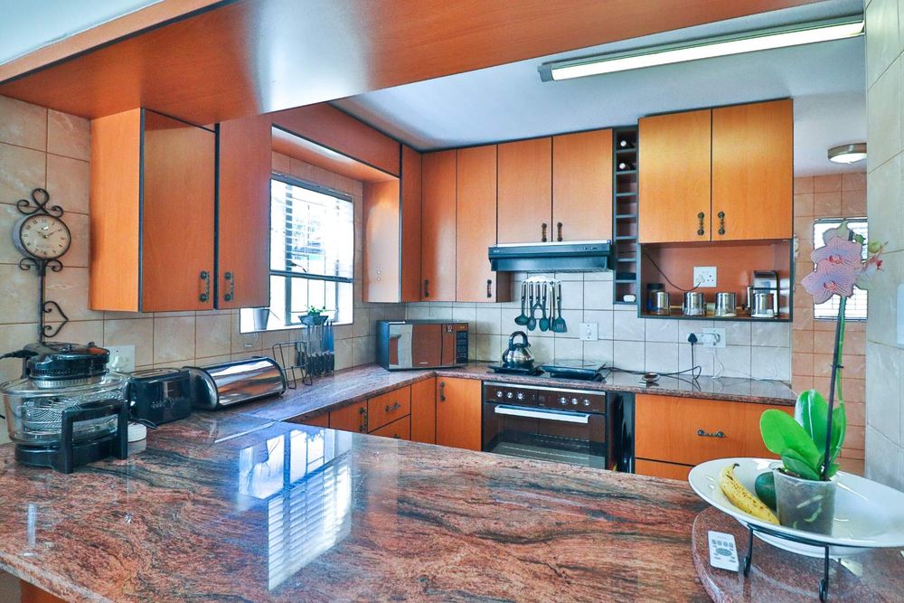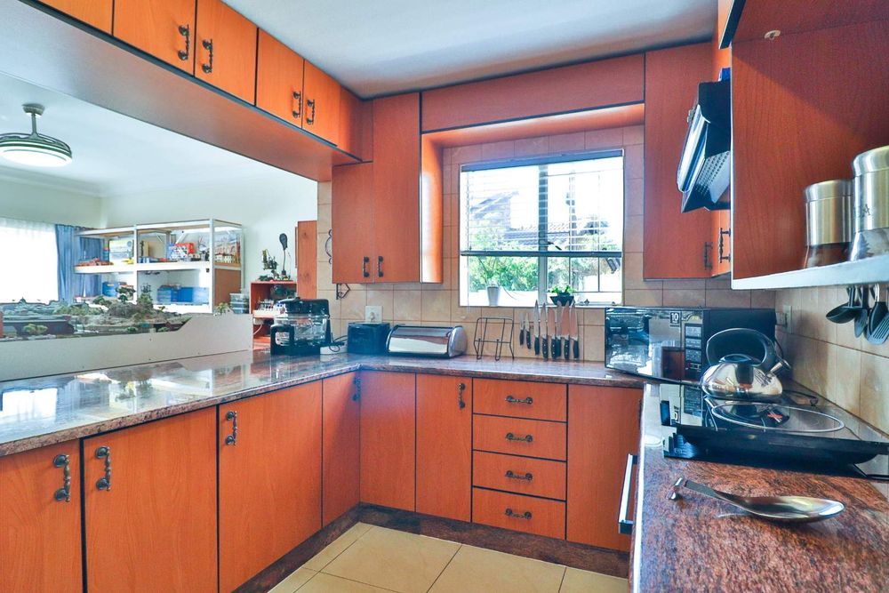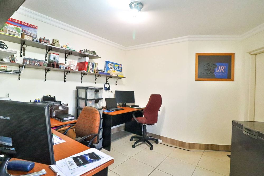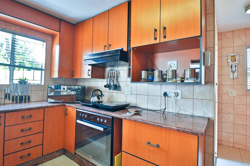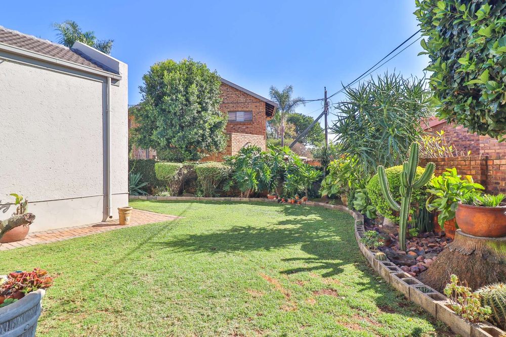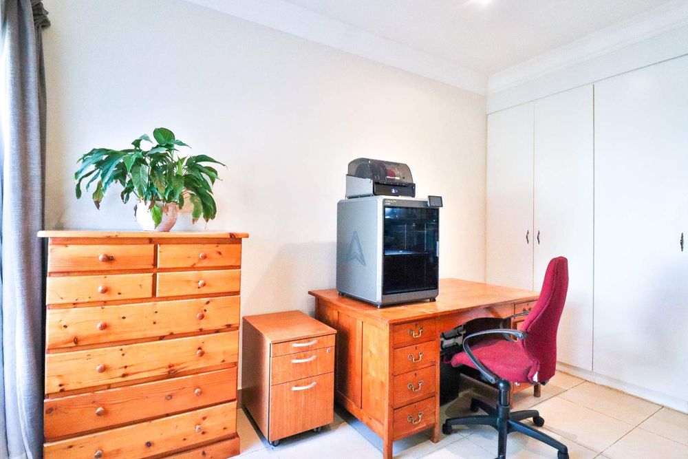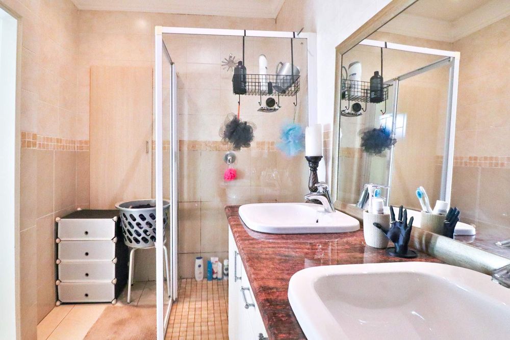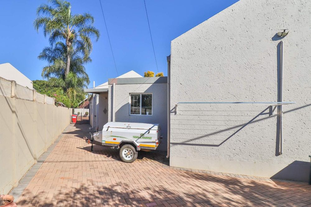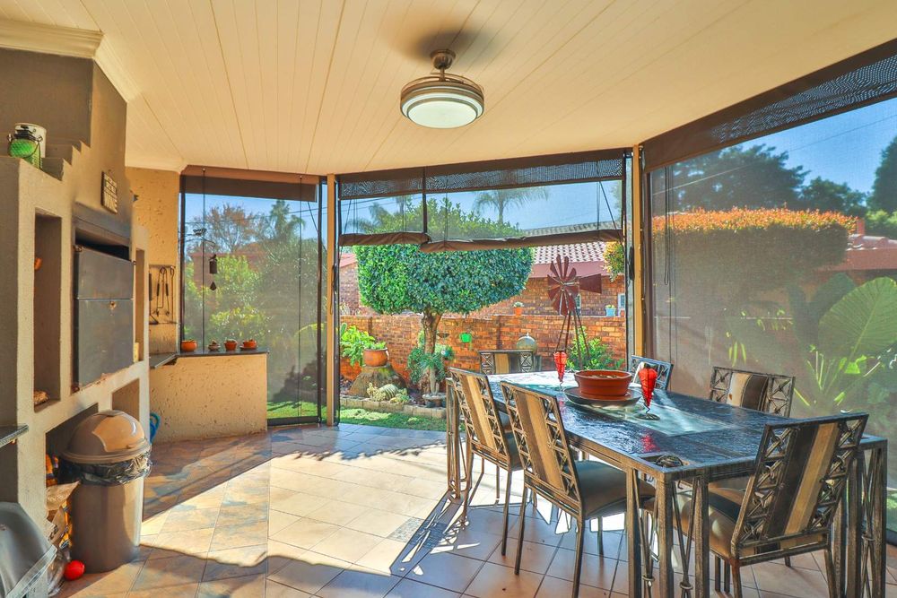 This home offers additional conveniences such as being in a ''no load shedding area'', a solar geyser on a timer, underfloor heating, remote-controlled retractable ceiling fans, prepaid electricity, Venetian blinds, and a water feature. Tiled throughout with wide passages, you'll also find a linen closet and an outdoor storage area for all your gardening equipment.