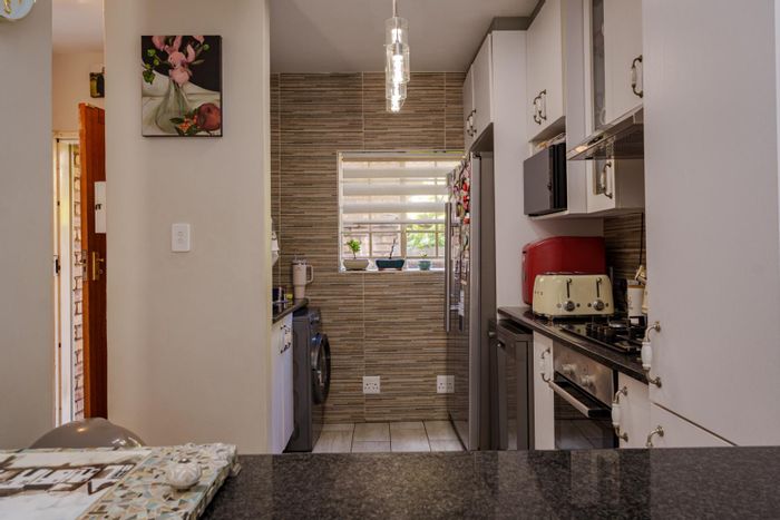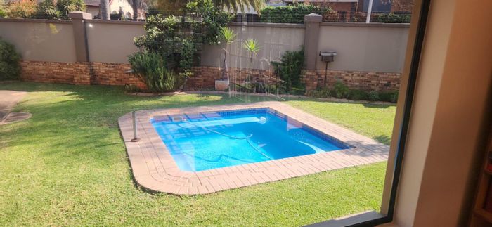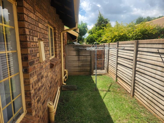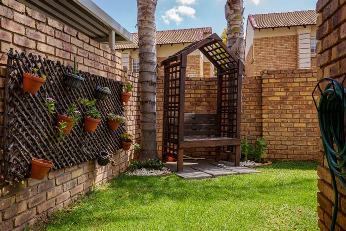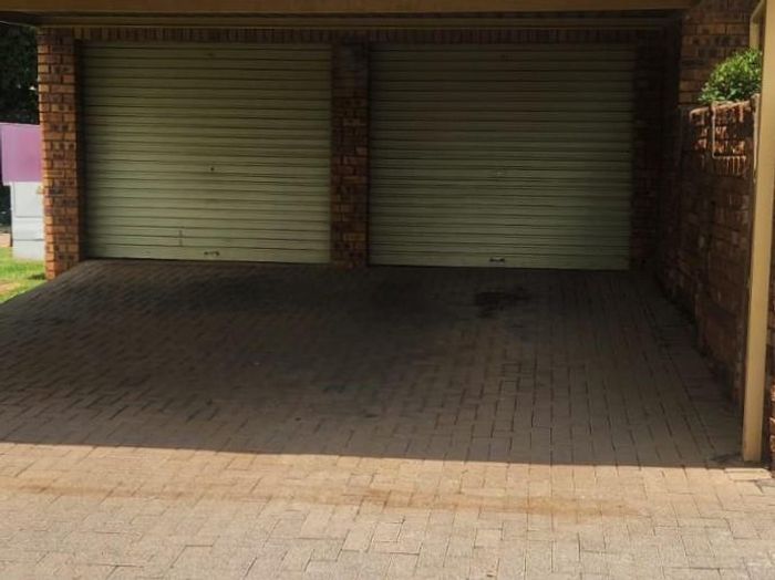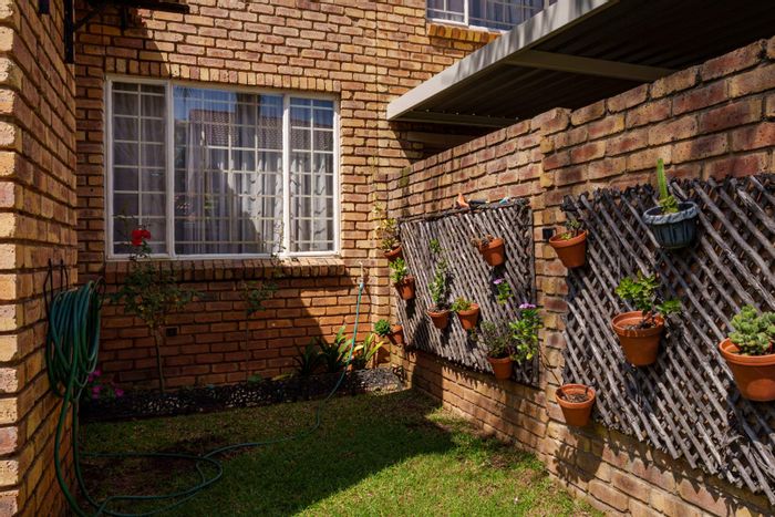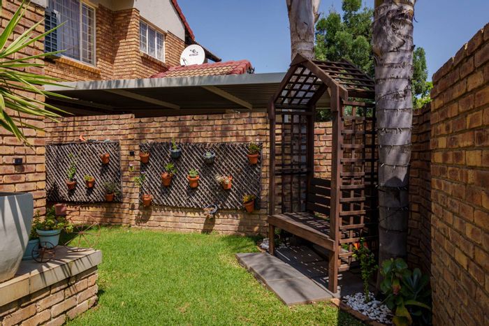 Peaceful ground-floor two-bedroom apartment in family-friendly Hennopspark, steps from local schools and Hennops Shopping Centre, with a small private garden, communal pool, braai, garage and open parking.