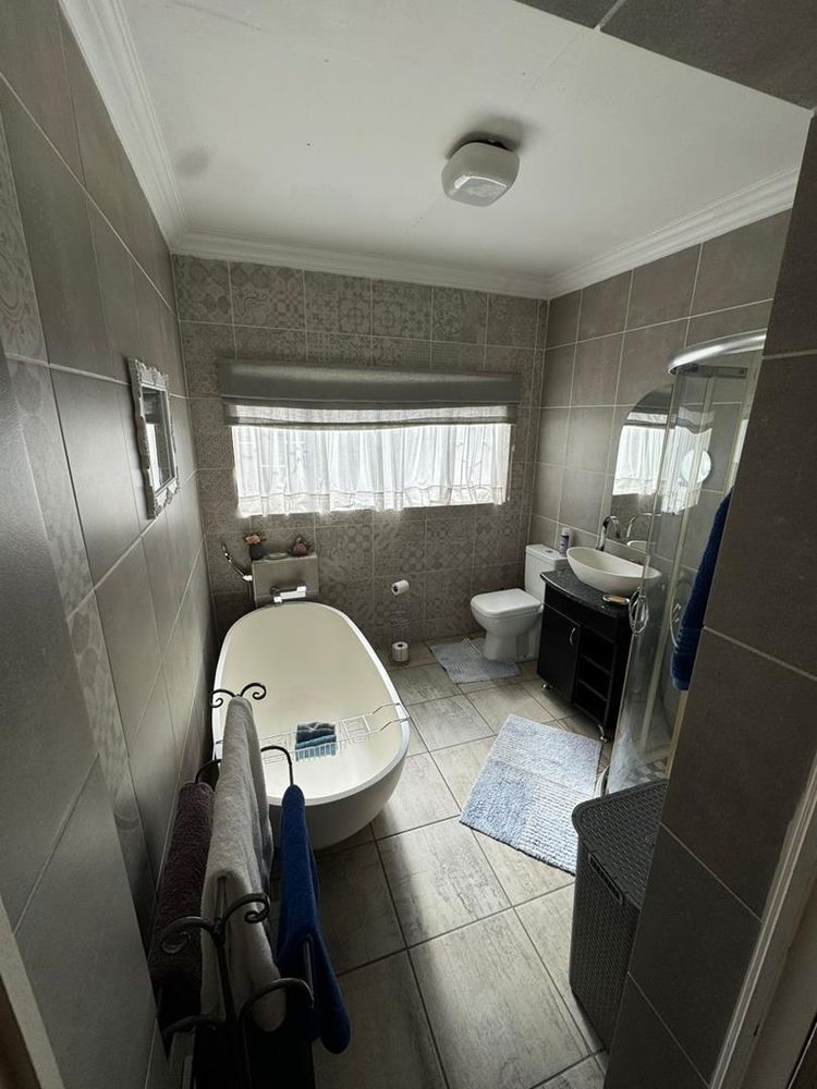 Comfort is a priority, with most rooms featuring air conditioning and all rooms wired for DSTV connections. A small solar system is installed in one part of the house, along with a solar geyser, promoting energy efficiency.
