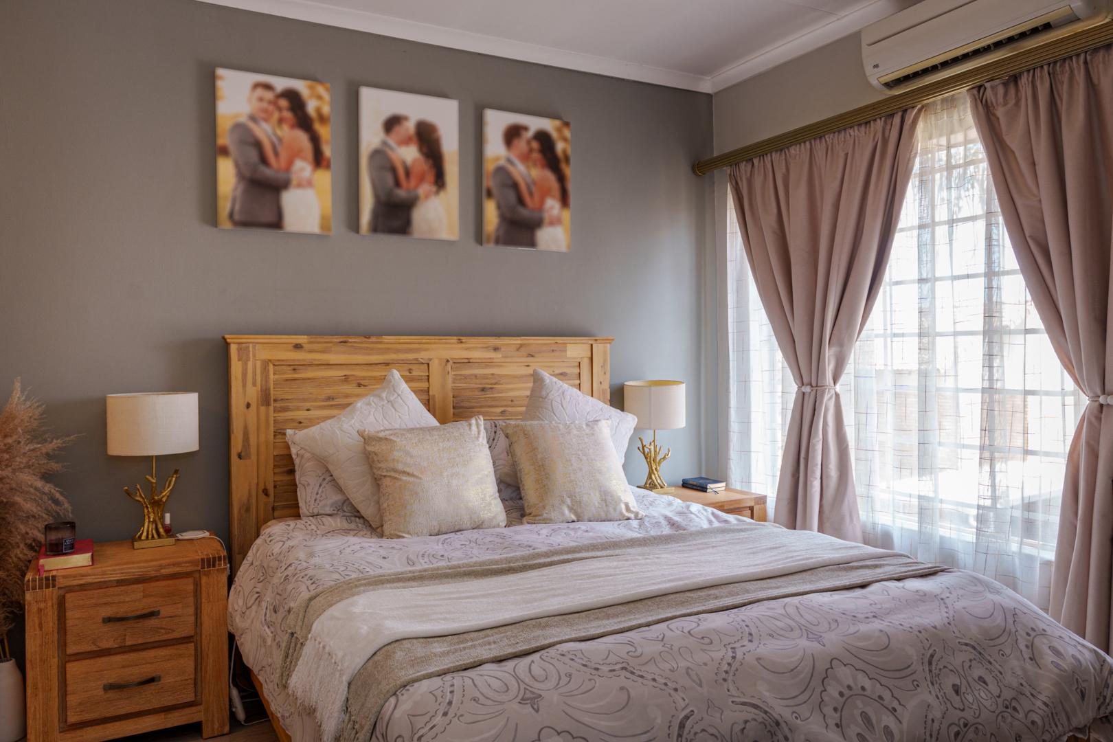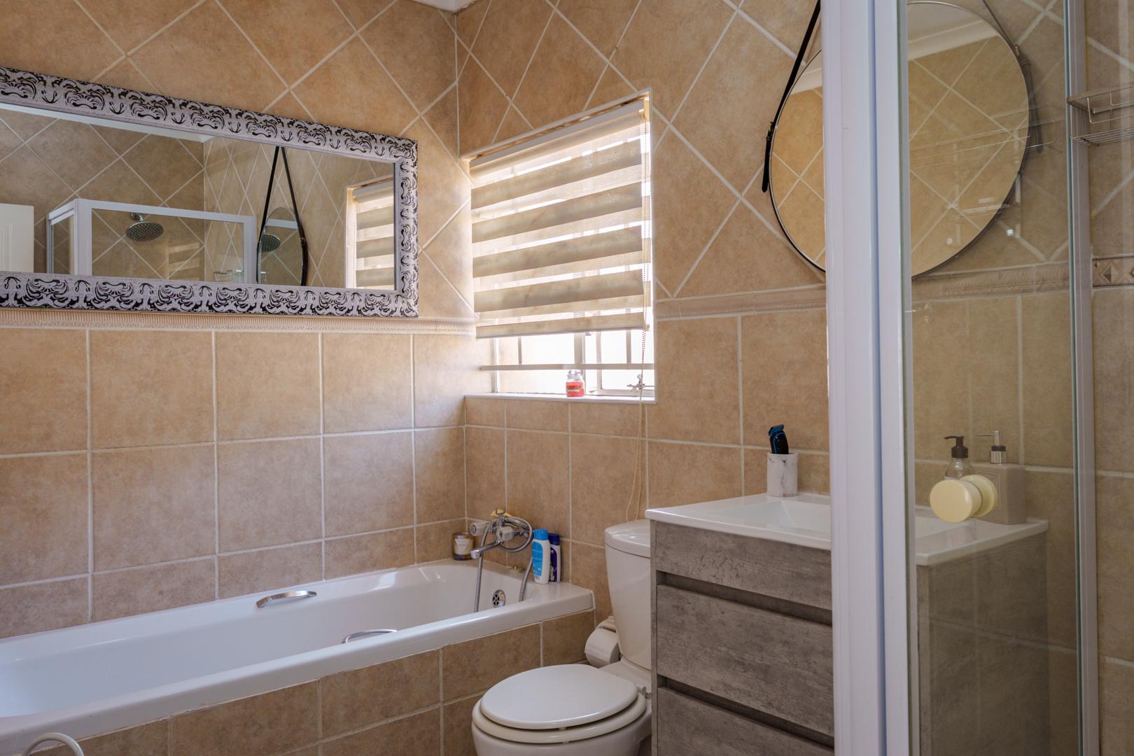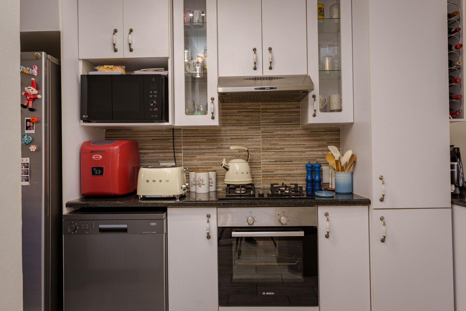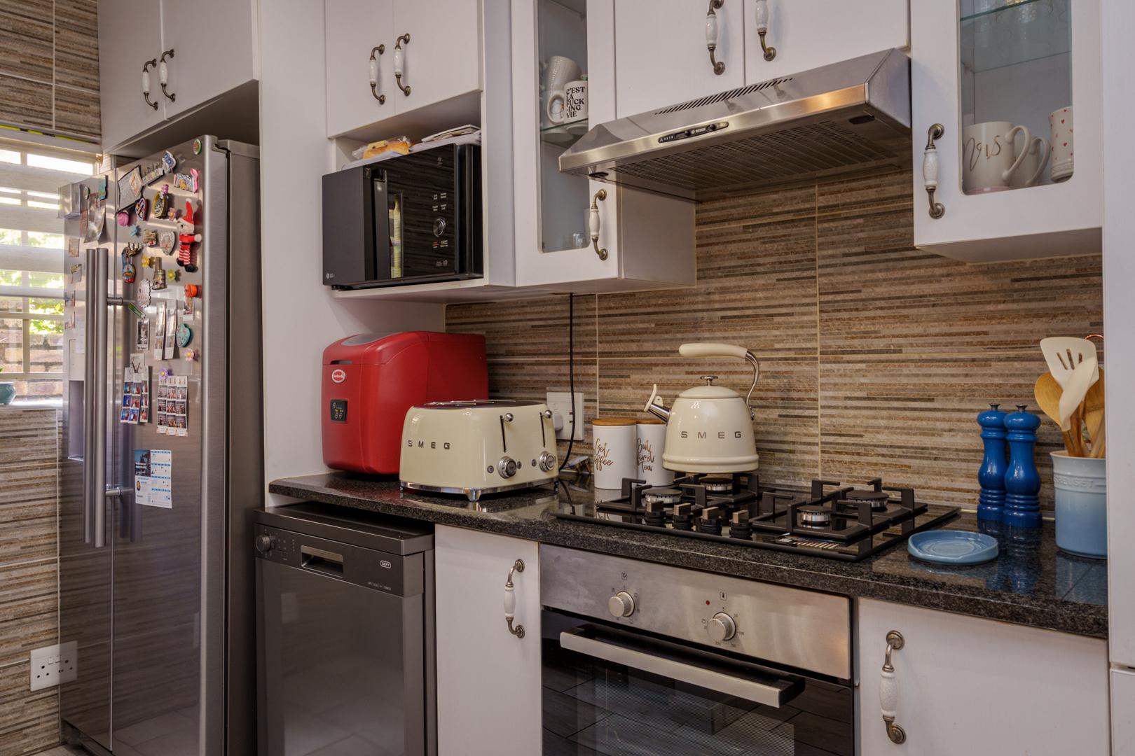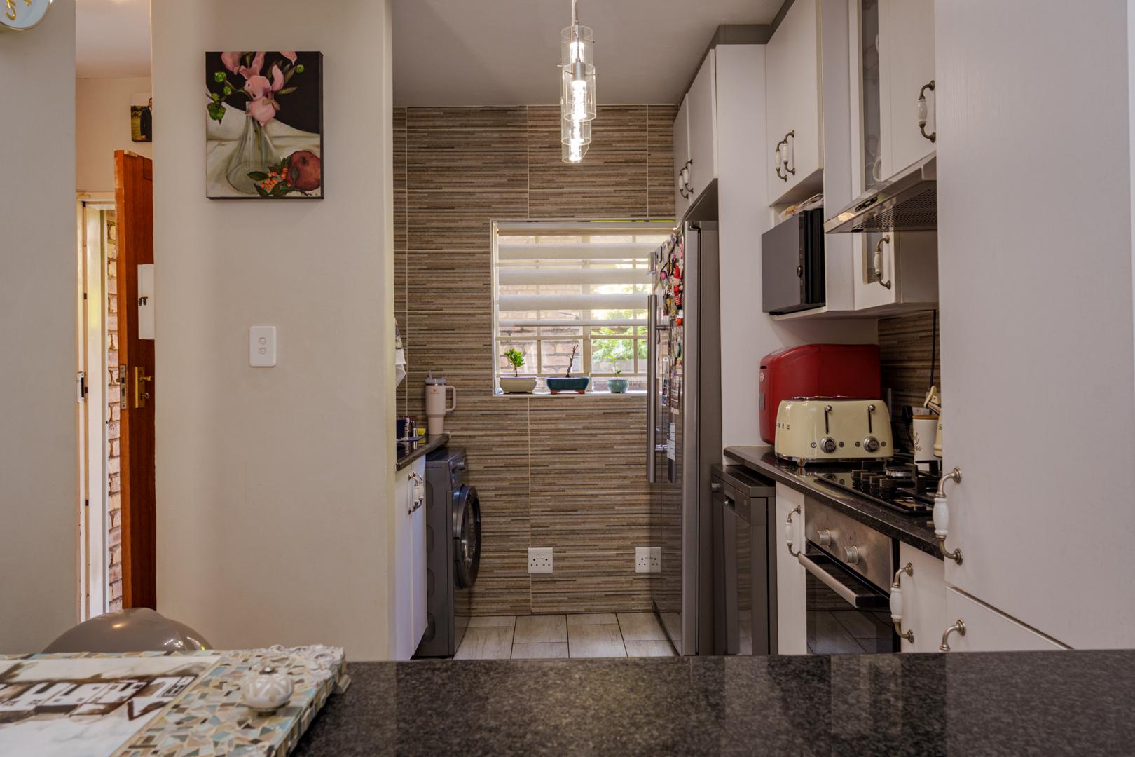 This beautiful modern kitchen has plenty of counter space, a large breakfast nook for interactive meal preparation. Space for double door fridge and two additional appliances. The backdoor conveniently leads out to the courtyard with washing line and entry to the garage. The gas hob saves on electricity.