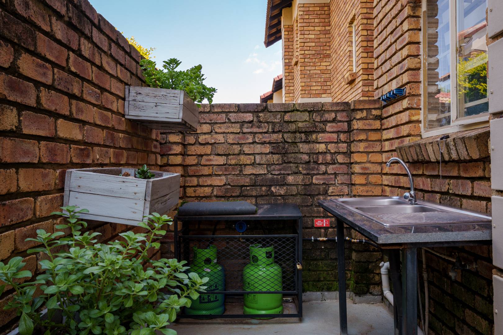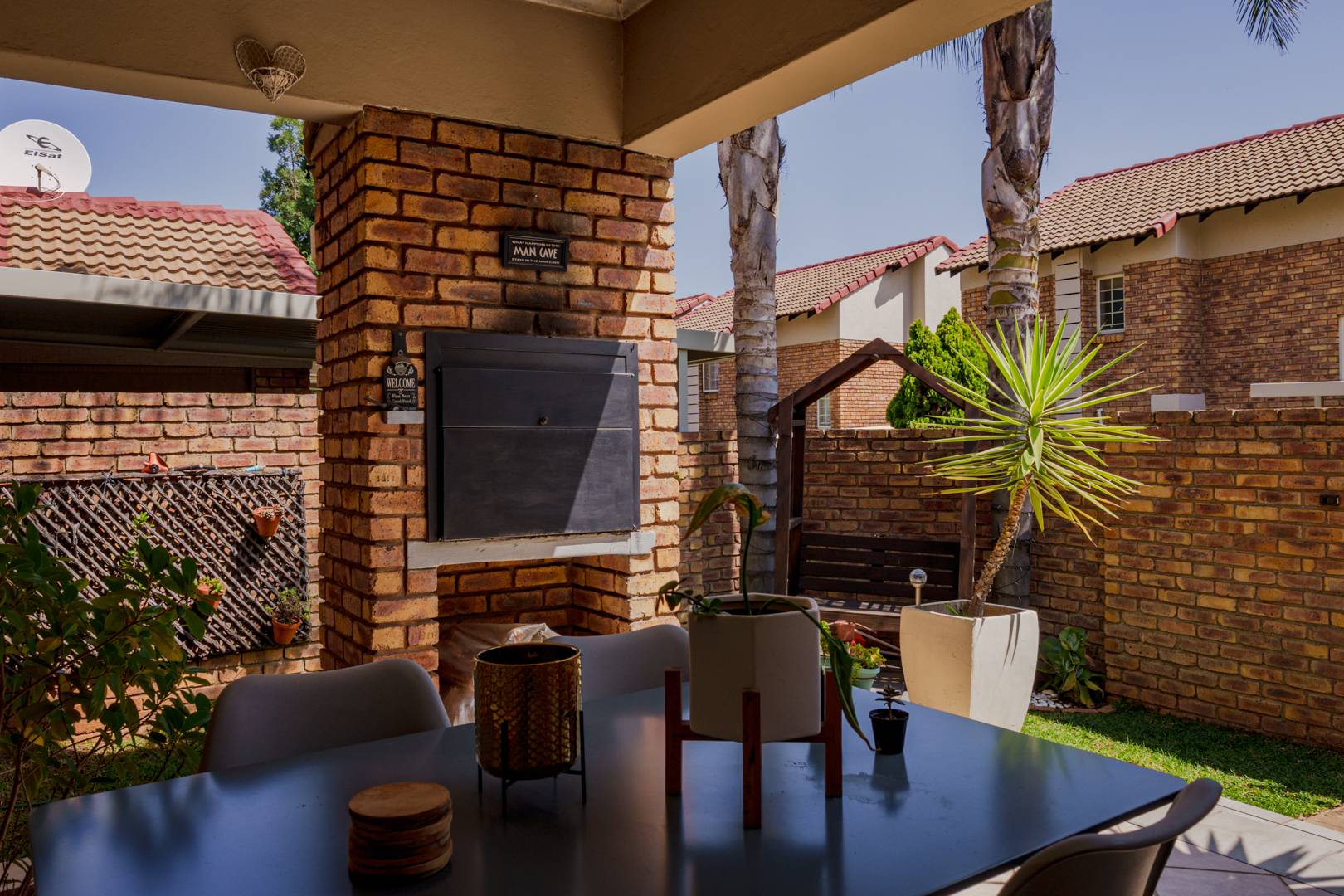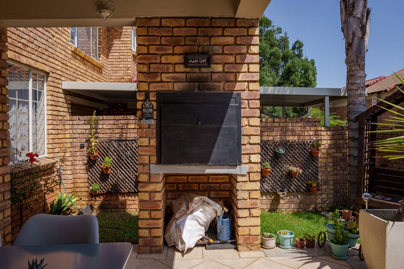 The undercover braai area set in a neat manicured garden with high walls ensures private outdoor living. The artificial grass in the courtyard adds extra outdoor space