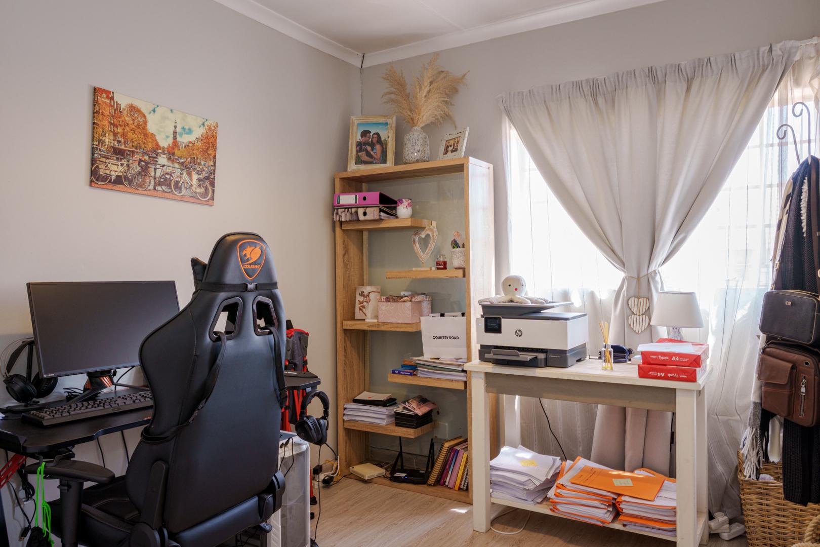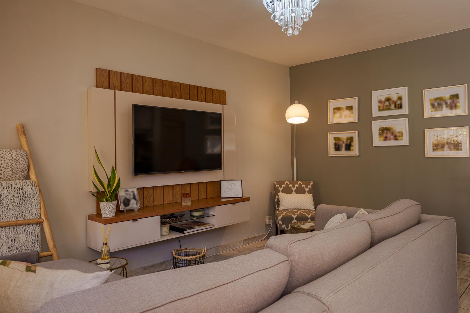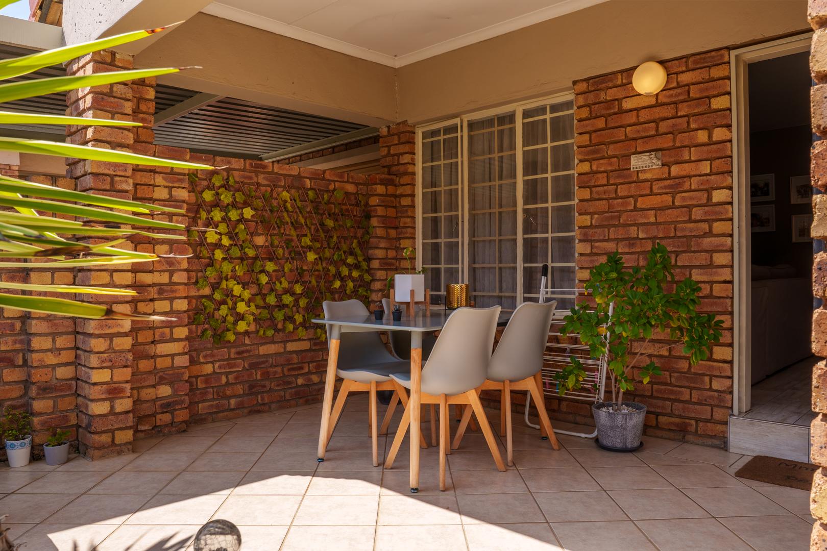 The undercover braai area set in a neat manicured garden with high walls ensures private outdoor living. The artificial grass in the courtyard adds extra outdoor space