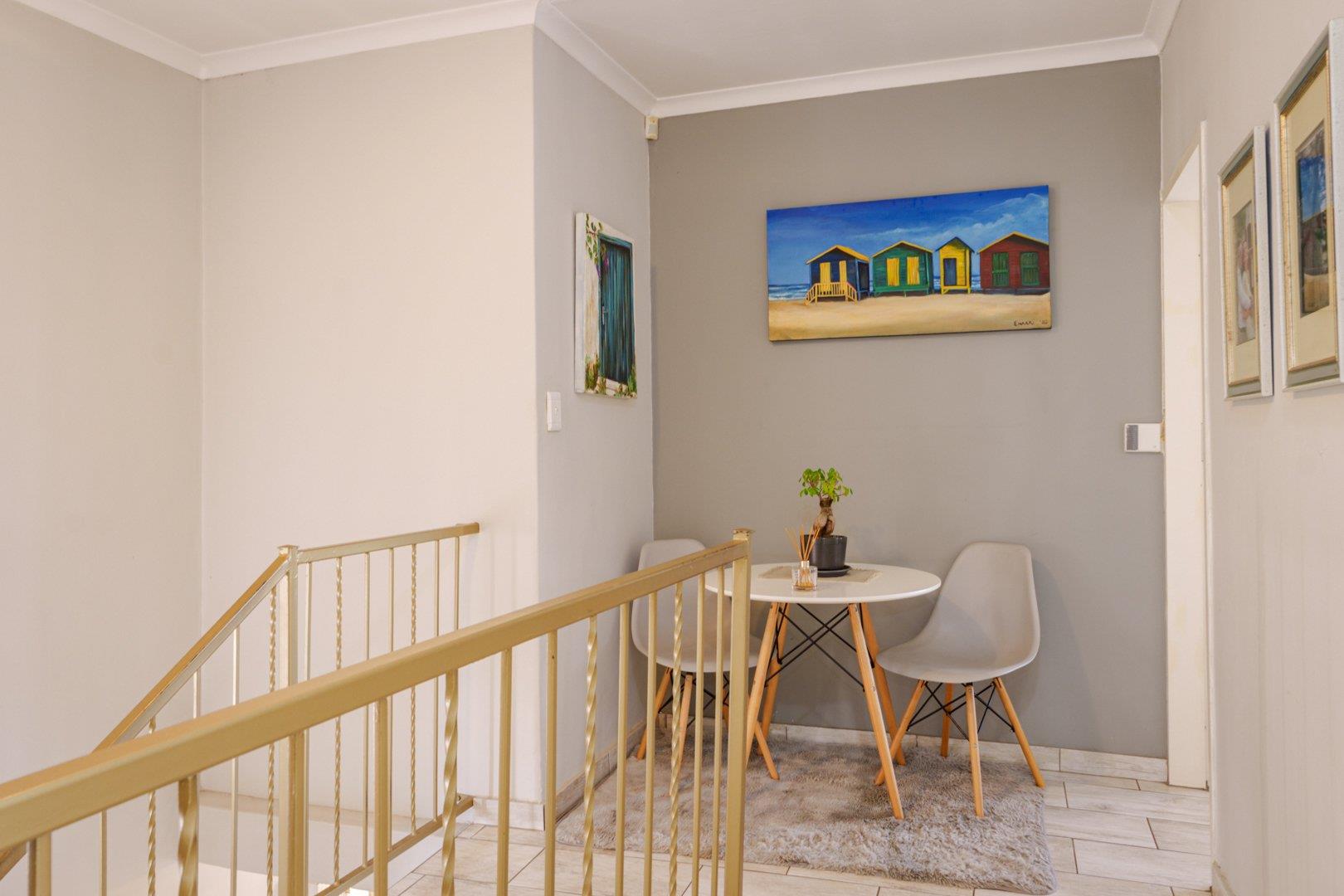 The landing at the top of the stair case is ideal as a work station or coffee station