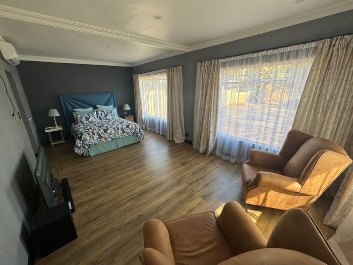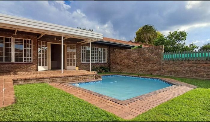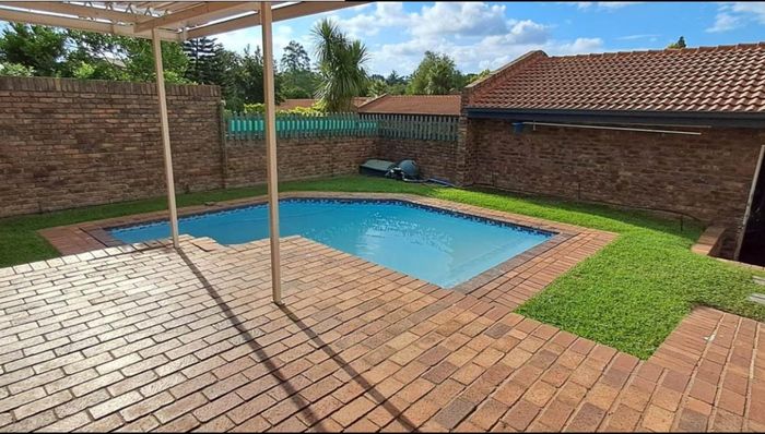 Relaxed family living on Meadow Avenue, Equestria with a huge wrap-around garden and patio with built-in braai — open-plan living, three bedrooms, two bathrooms, two automated garages.