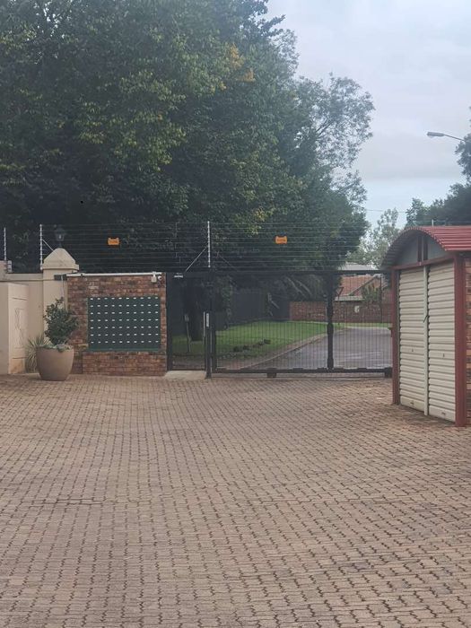 Two-bedroom, two-bathroom simplex with garden, patio, double carport, and security near highway and shops.